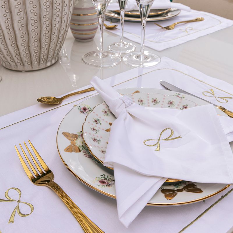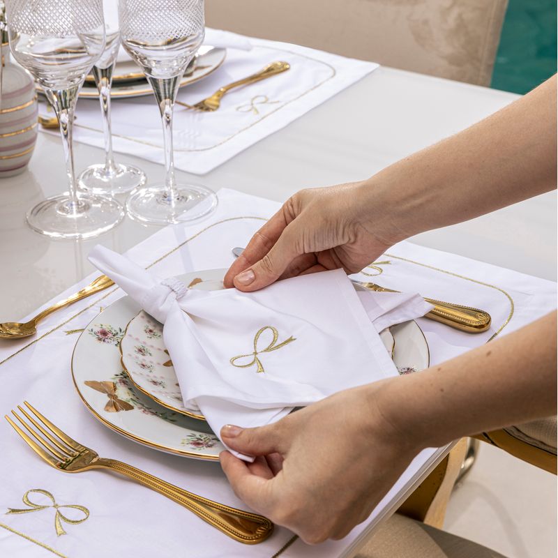 Kit com 6 Conjuntos Jogo Americano Bella Mesa Laccio d' Oro 100% Algodão